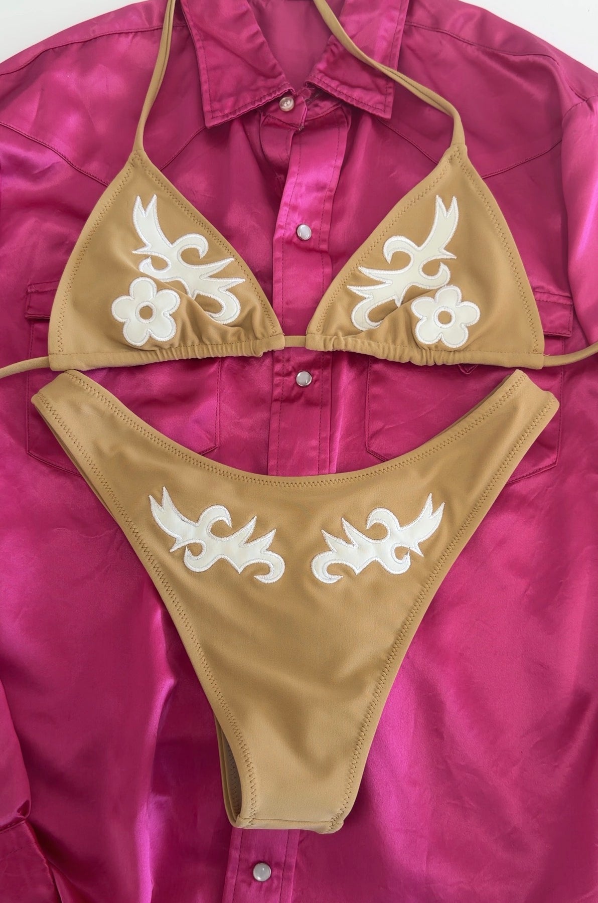 Thalia Bikini Bottom - Western Appliqué Tan